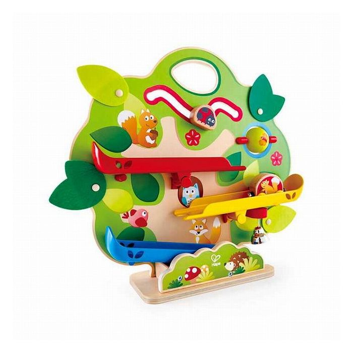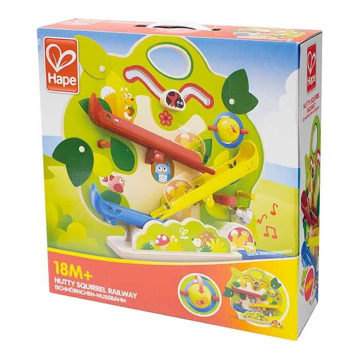 電車の旅の途中でいたずらりすさんに出会います。大きな木を駆け下りるりすさん。他にもお友達のてんとう虫さんやちょうさんと遊ぶことができます。レールとくっつけると、もうワクワクが止まりません。