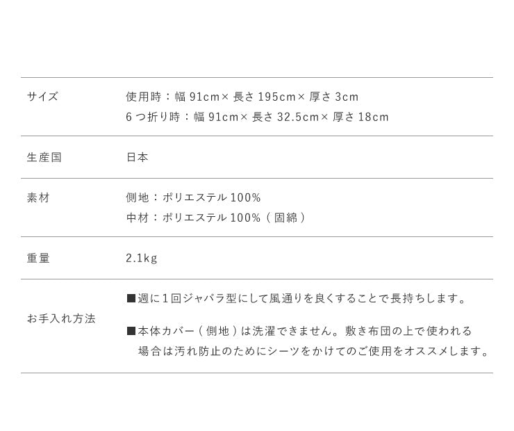 使用時:幅91×長さ195×厚さ3(cm)