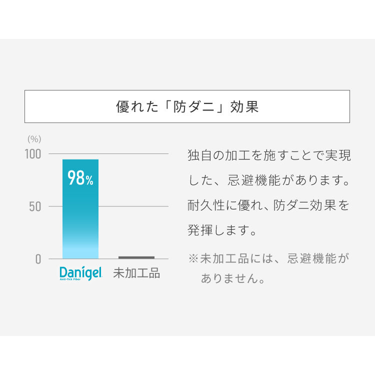 中綿には抗菌・防臭・防ダニ機能付きのTORAY(ダニゲル)綿を使用。
