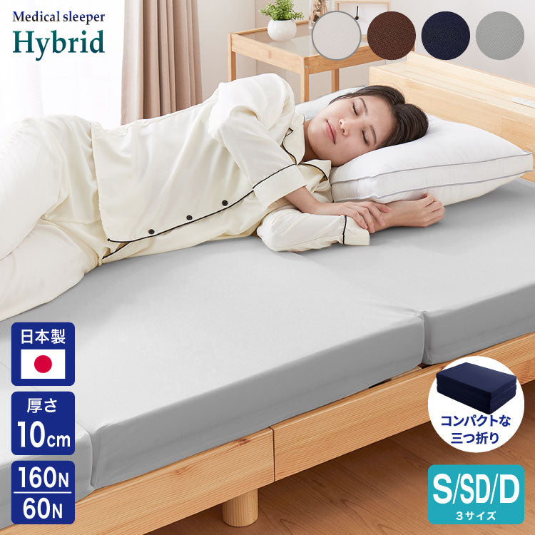 マットレス 日本製 シングル セミダブル ダブル メディカルスリーパー ハイブリッド 三つ折り 厚さ10cm 高反発 低反発 国産 ウレタン 体圧分散 硬め 柔らかめ(代引不可)