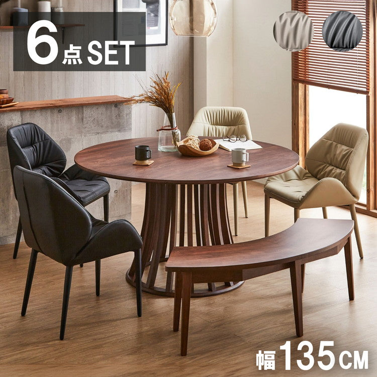 ダイニング6点セット 幅135cm 高さ71cm 円形 無垢材 インテリア チェア チェアー いす イス 椅子 リビング ダイニングチェアー リビングチェア リビングチェアー テーブル デスク 机(代引不可)