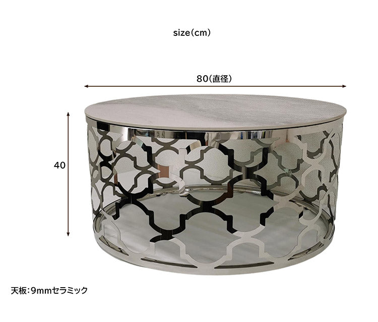 センターテーブル セラミックテーブル 幅80 おしゃれ モダン 鏡面 セラミック 耐熱 耐汚 円形 ラウンドテーブル ローテーブル ホワイト系 白 リビングテーブル(代引不可)