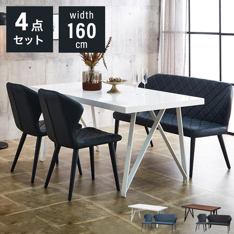 ダイニングセット ダイニング4点セット ダイニングテーブルセット 4人掛け 幅160 ホワイト 鏡面 ウォールナット ダイニング 食卓テーブル おしゃれ ダイニングベンチ ベンチ キルティング(代引不可)