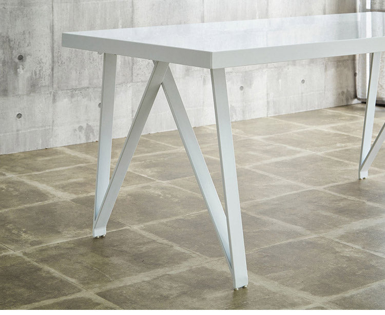 清潔感のあるホワイト鏡面仕上げのダイニングテーブルとカジュアルモダンなチェアの5点セット。