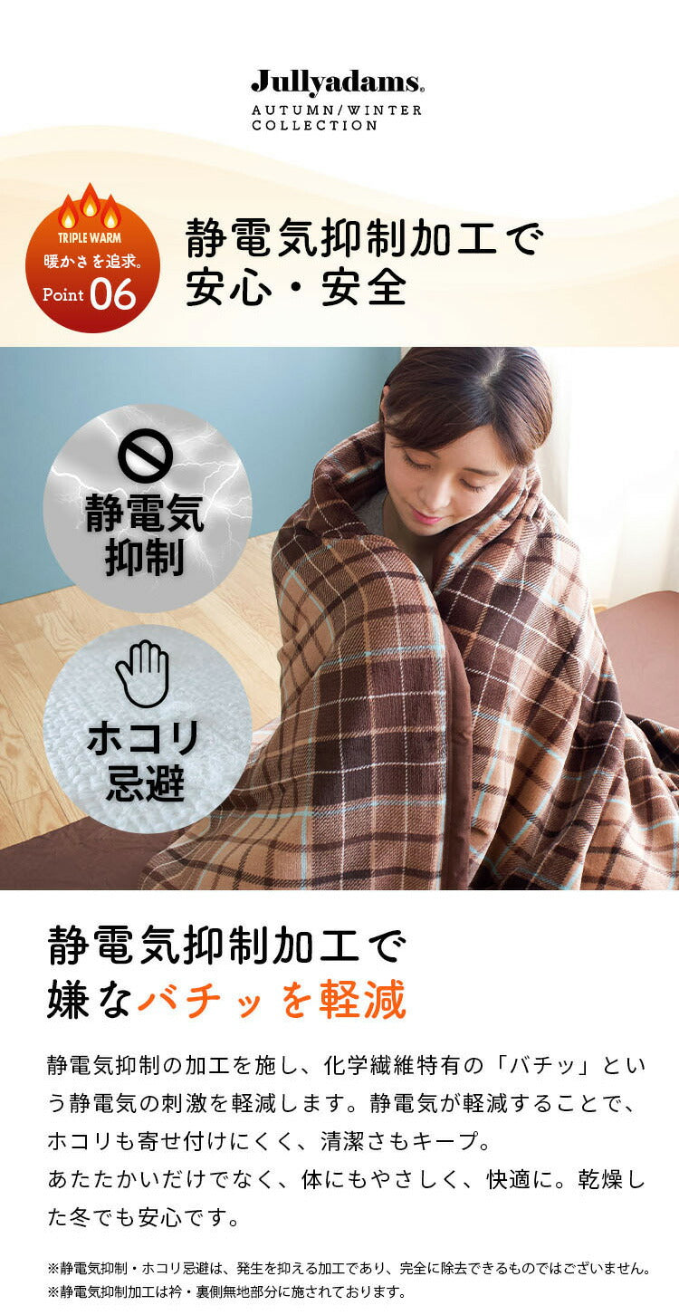 4層毛布 わた入りブランケット シングル Jullyadams 吸湿発熱 シンサレート 洗える 掛け布団 掛ふとん 掛布団 冬 あったか 暖かい 静電気防止 保温