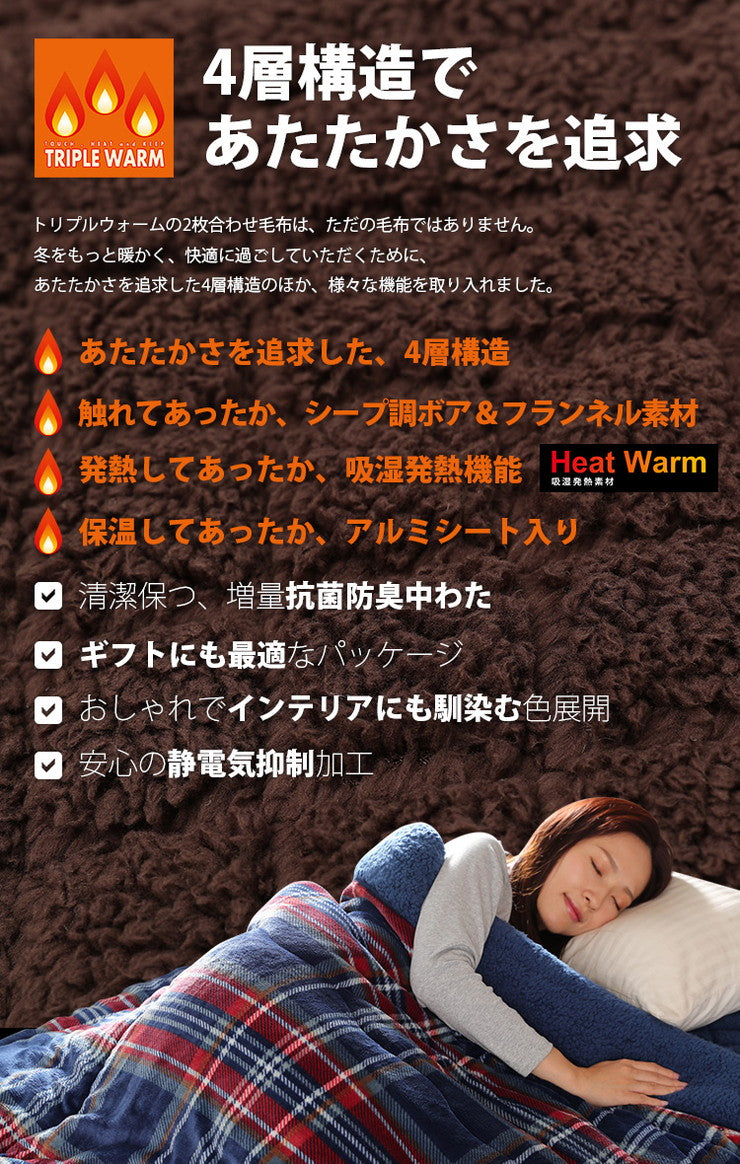毛布 ダブル 180×200cm チェック柄 Jullyadams TripleWarm わた増量 ブランケット ジュリーアダムス トリプルウォーム