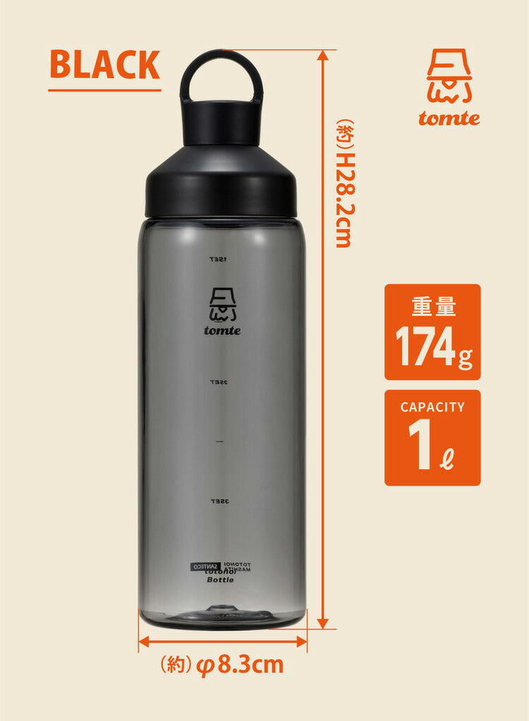 ボトル ウォーターボトル ホワイト メモリ付き 1リットル 軽量 携帯便利 トライタン製 BPAフリー マイサウナトトノイボトル tomte シービージャパン(代引不可)