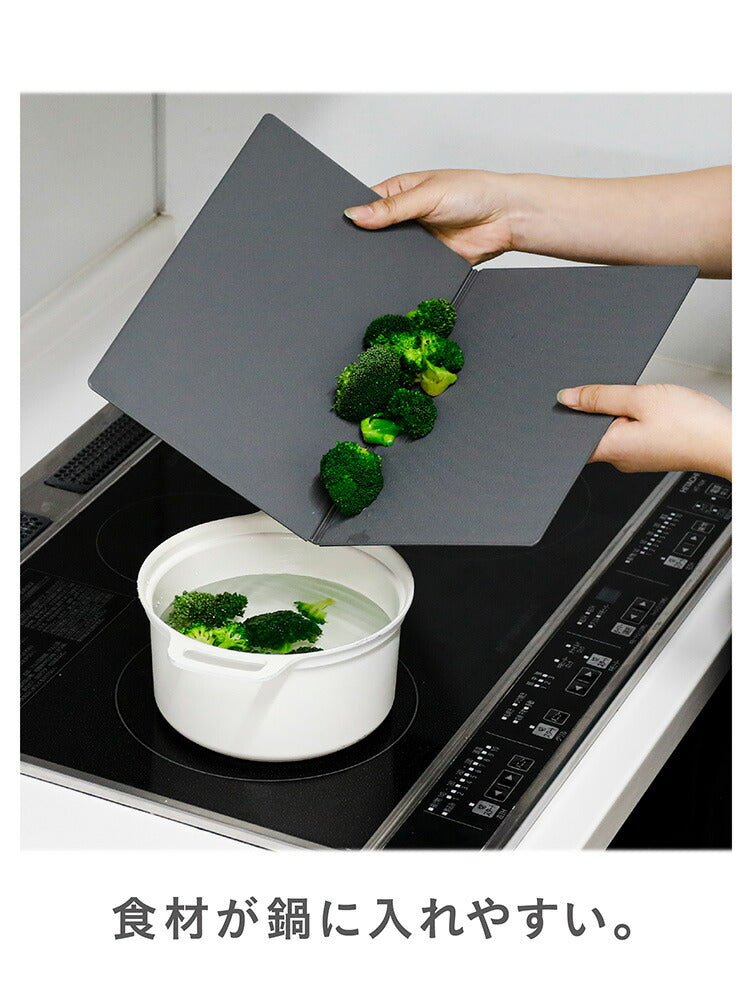 折り曲げることが出来るので、そのまま鍋やフライパンに切った食材をさっと入れることが出来るので便利です。
