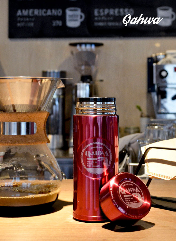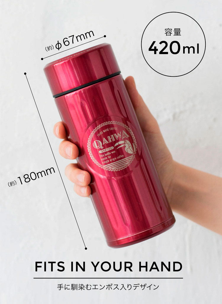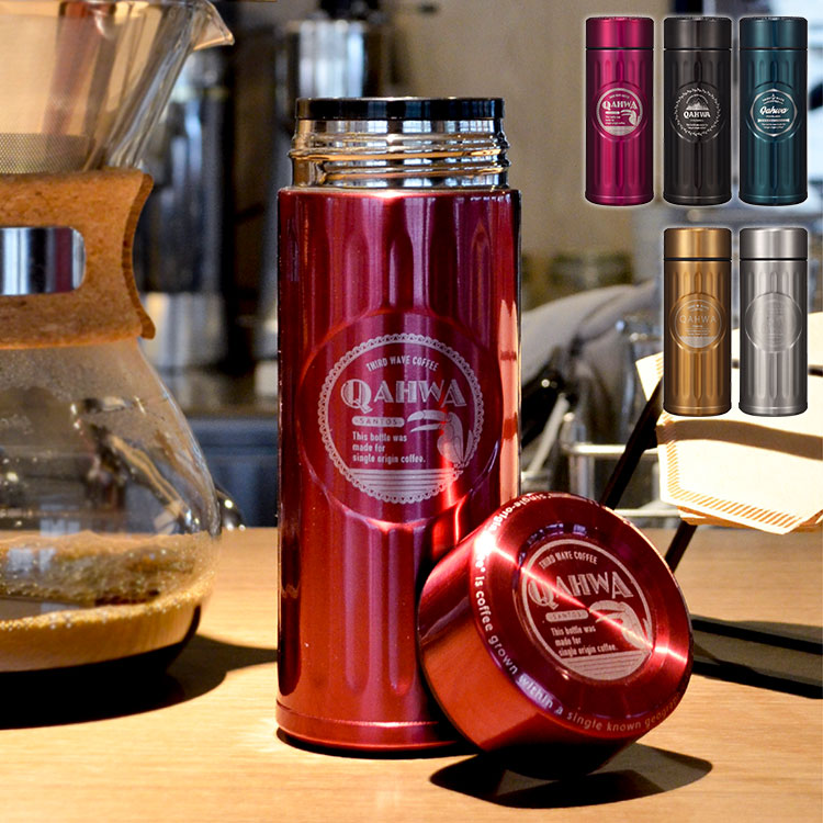 マグボトル カフア QAHWA ステンレスボトル テフロン加工 COFFEE こぼれない 定番 エンボスデザイン おしゃれ 保冷 保温 直飲み 飲み口 コーヒーボトル コーヒー 水筒 コーヒー専用(代引不可)