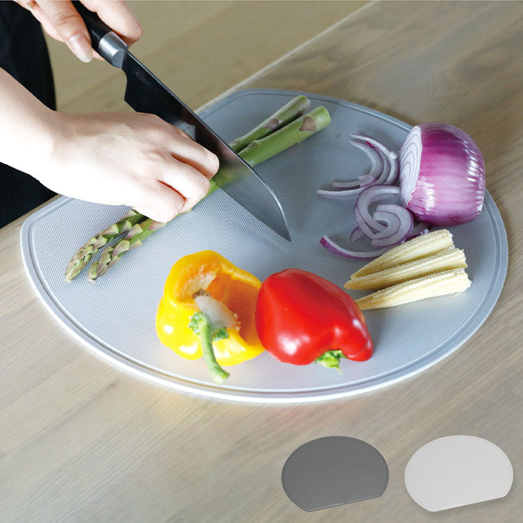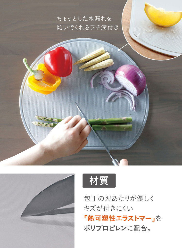 食洗機対応 丸いまな板 耐熱エラストマー 穴無し CBジャパン atomico 抗菌加工 まな板 カッティングボード 食洗機対応 熱湯消毒 両面使用 半円形 グレー(代引不可)