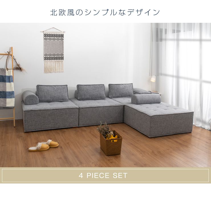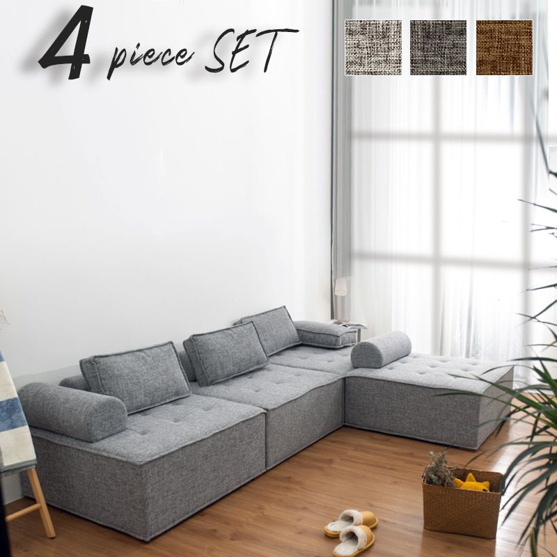 ソファ コンパクトソファ 4個セット 四人掛け 幅99cm 奥行99cm 高さ41cm クッション付き アームレスト付き フットレスト付き