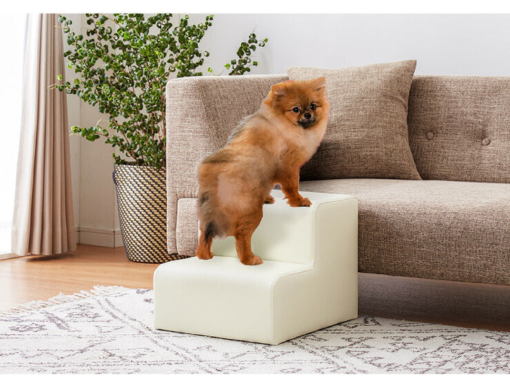 ドッグステップ 階段 PVC レザー ブラウン ブラック ホワイト 2段 幅35cm 北欧 シンプル ナチュラル ドッグスロープ ペットステップ ペット用 犬 犬用 小型犬 高齢犬 滑り止め スロープ型 ミニチュアダックス ペット シニア犬