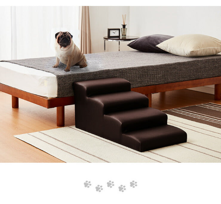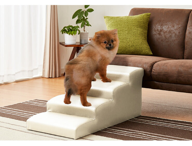 ドッグステップ 階段 スロープ型 4段 犬用 幅40cm アイボリー ブラック ブラウン PVC レザー 小型犬 高齢犬 シニア犬 おしゃれ シンプル かわいい ペットステップ スロープ ペットスロープ ペット ペット用 犬 ソファ