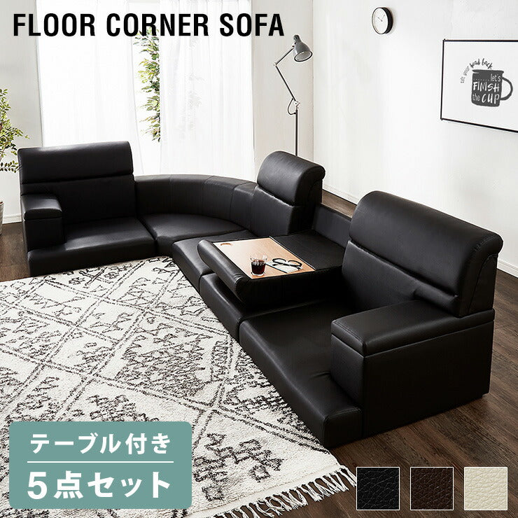 コーナーソファー ロータイプ 5点セット 3人掛け テーブル付き 開梱設置無料 レザー調 ソファ ローソファー ソファー フロアソファー こたつ コーナー K字型 フロアソファ ローソファ インテリア おしゃれ(代引不可)