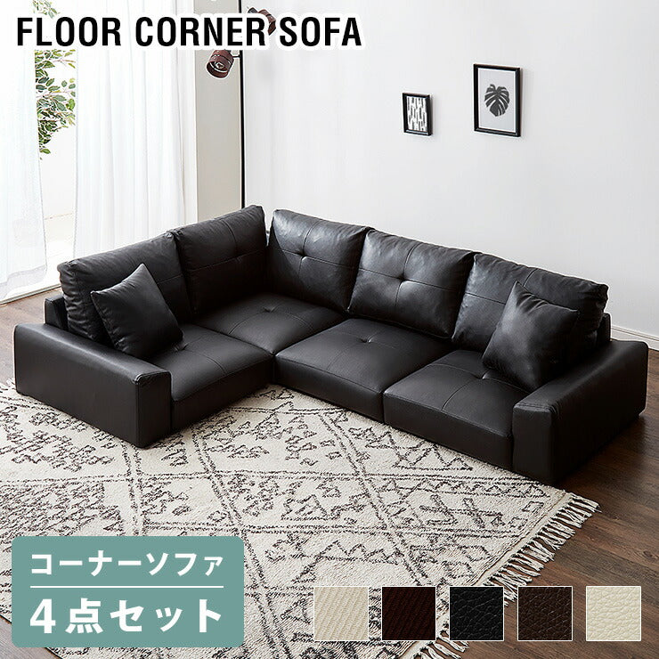 ローソファー ソファ コーナーソファー ロータイプ 4点セット クッション付き 2人掛け 3人掛け ソファー L字 こたつ用 ファブリック レザー 北欧 おしゃれ コーナー ローソファー フロアソファー カウチ