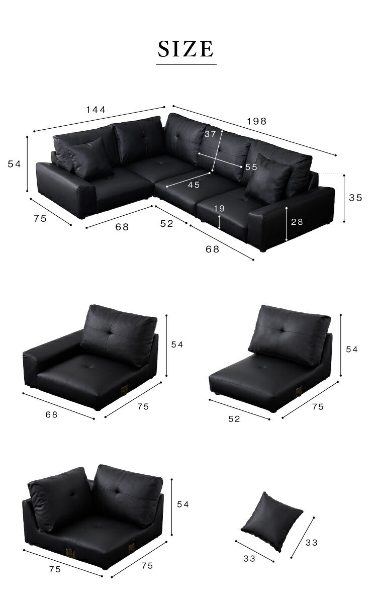 ソファ本体/約:幅198×奥行144×高さ35~54 座面高19(cm)