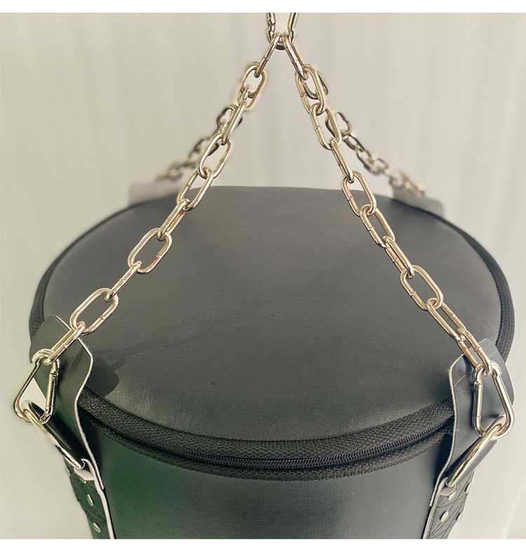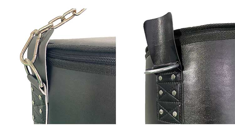 打撃の衝撃が最も加わるチェーン取付部には裏張りやリベットを使用し、強度に十分配慮した縫製になっています。
