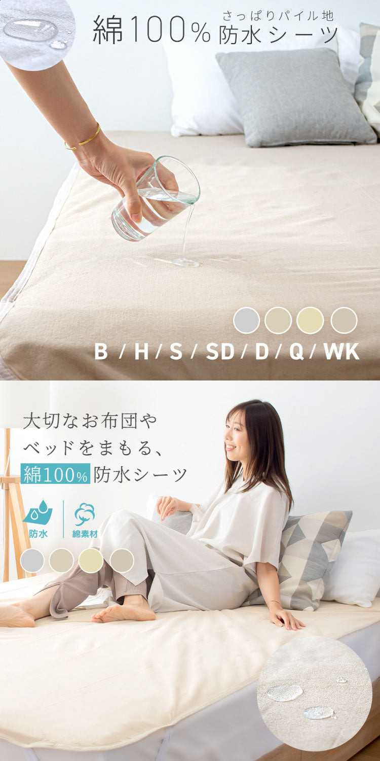 大切なおふとんをまもる、綿100%の防水シーツ。 お子様のおねしょ対策や保育園用はもちろん、介護用や大切なペットにもおすすめです。