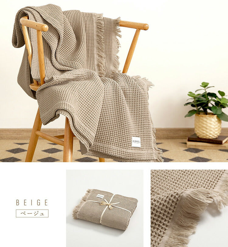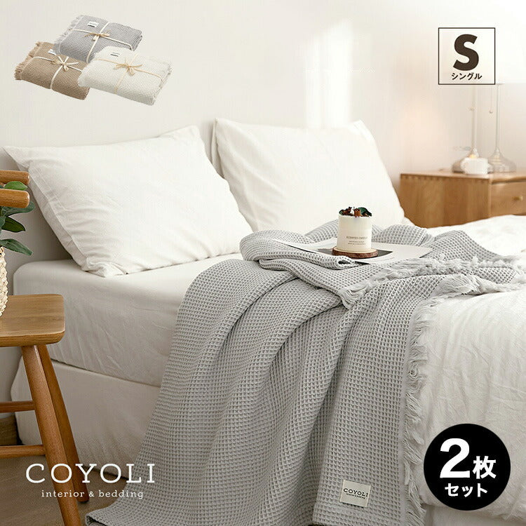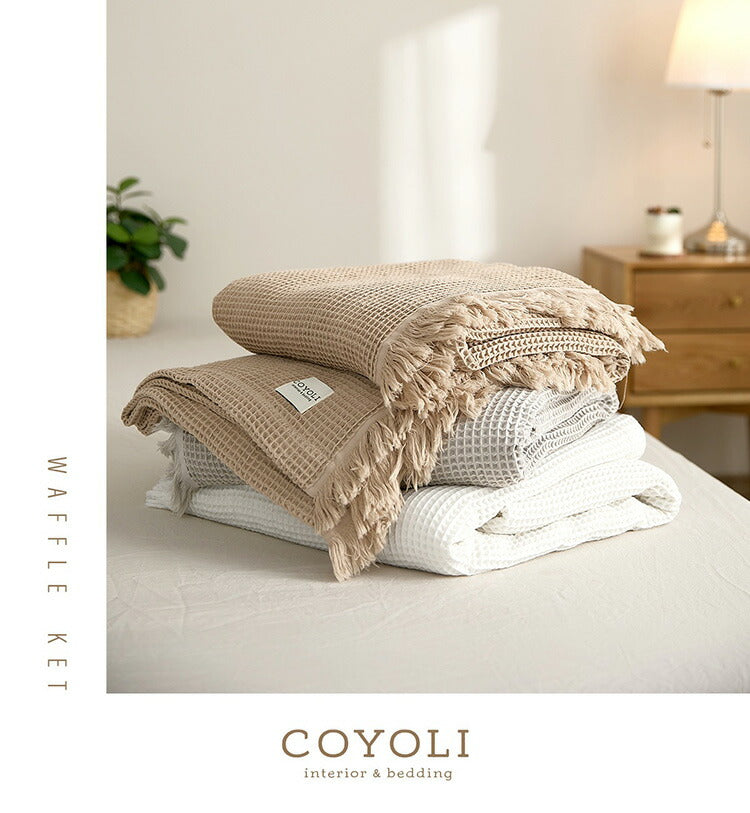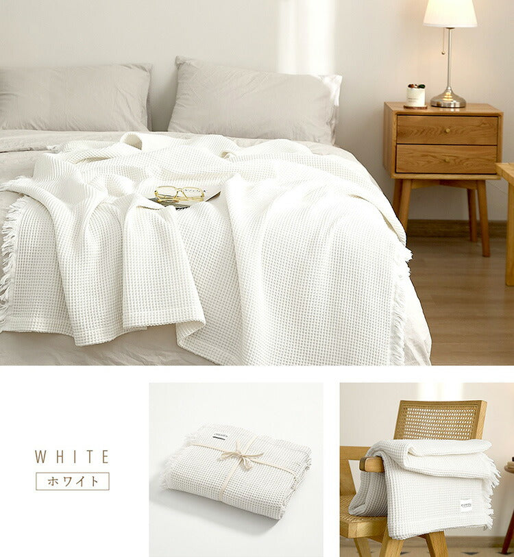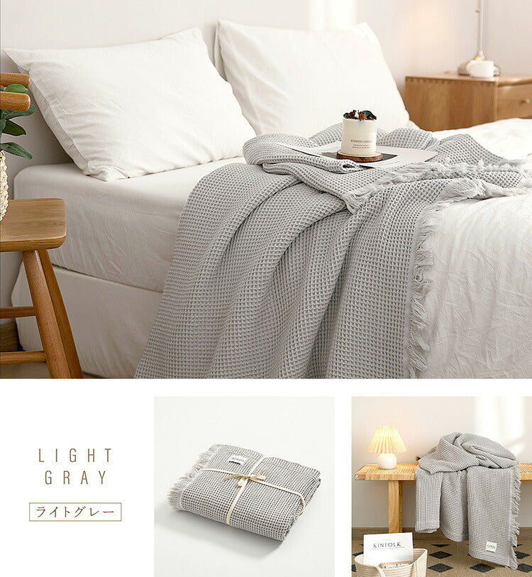 【2枚セット】 ワッフルケット シングル フリンジ付き かわいい 韓国インテリア 綿100% タオルケット ブランケット 大判 夏用 洗える 肌掛け布団 夏掛け布団 マルチカバー(代引不可)