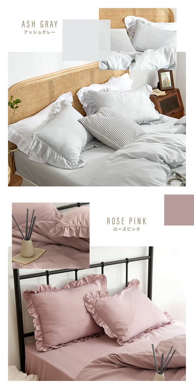 フリル枕カバー 43×63cm フリル付き かわいい おしゃれ ピローケース まくらカバー 寝具 韓国インテリア くすみカラー ロケース しっとり やわらか 韓国風 洗える 抗菌 姫系(代引不可)【メール便配送】