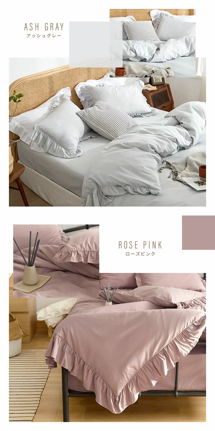 【2枚set】フリル 掛け布団カバー くすみカラー シングル 掛けカバー 韓国 ピーチスキン しっとり やわらか オールシーズン 布団カバー 寝具 新生活 春夏 新生活応援 ピンク ホワイト 可愛い(代引不可)