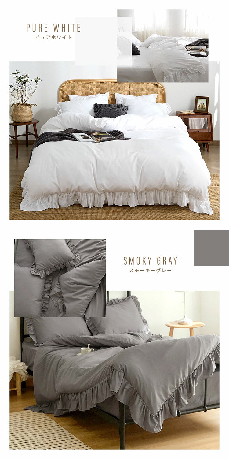 【2枚set】フリル 掛け布団カバー くすみカラー セミダブル 掛けカバー 韓国 ピーチスキン しっとり やわらか オールシーズン 布団カバー 寝具 新生活 春夏 新生活応援 ピンク ホワイト 可愛い(代引不可)