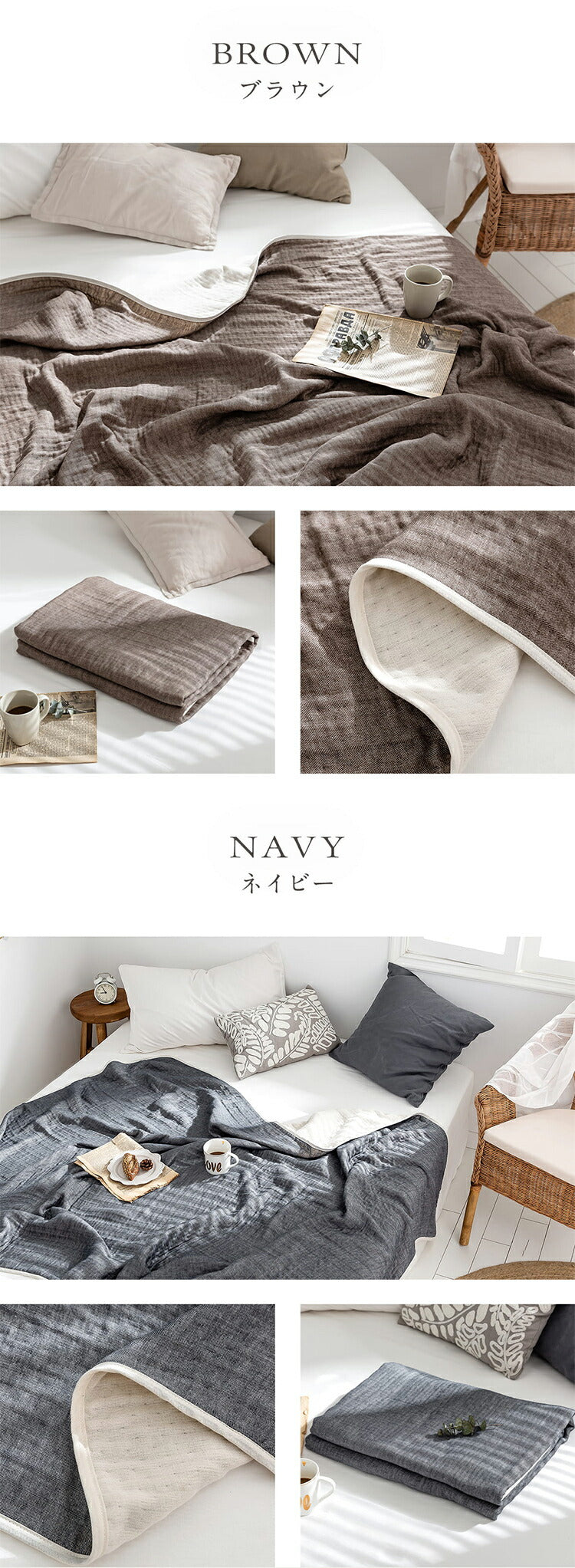 肌掛けやシーツ代わり、インナーケットにと季節やお好みに合わせて使い分け可能です。
