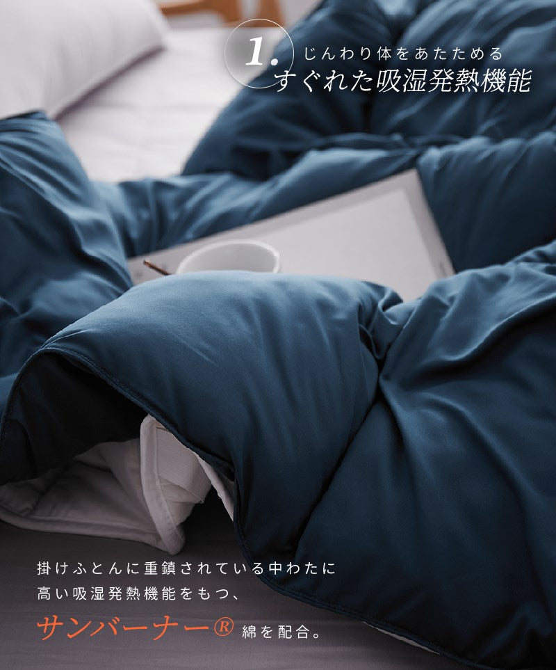 ふとんの内側からじわじわと発熱し、しっかり保温。