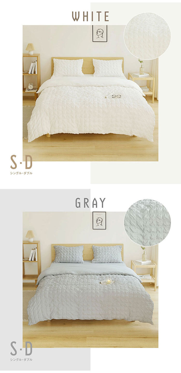 くしゅぽこ韓国風布団カバー3点セット 掛け布団カバー ボックスシーツ 枕カバー シングル 綿100% 韓国風 丸洗い 無地 肌に優しい 快適 お手入れ簡単 可愛い おしゃれ ガーゼ 低ホルムアルデヒド(代引不可)