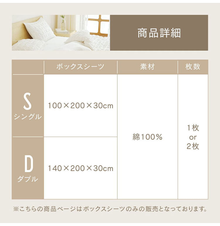 季節を問わず使え、お手入れ簡単で清潔に保てるボックスシーツです。