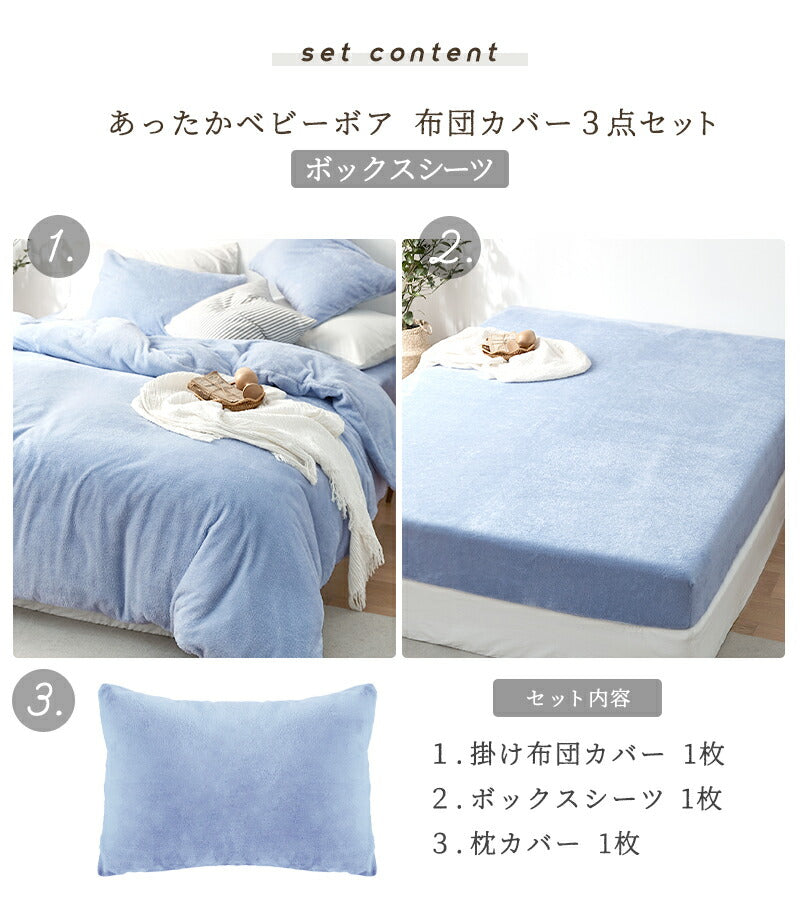 あったか布団カバー 3点セット シングル 冬用 洗える ボックスシーツ 掛け布団カバー 枕カバー ベビーボア マイクロファイバー(代引不可)
