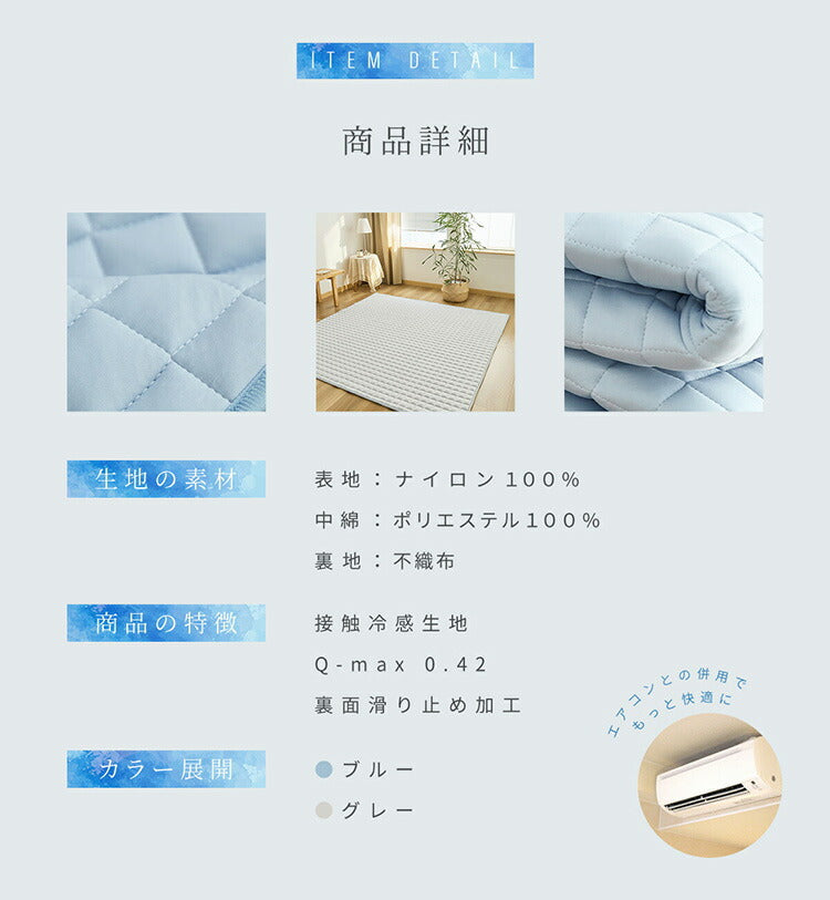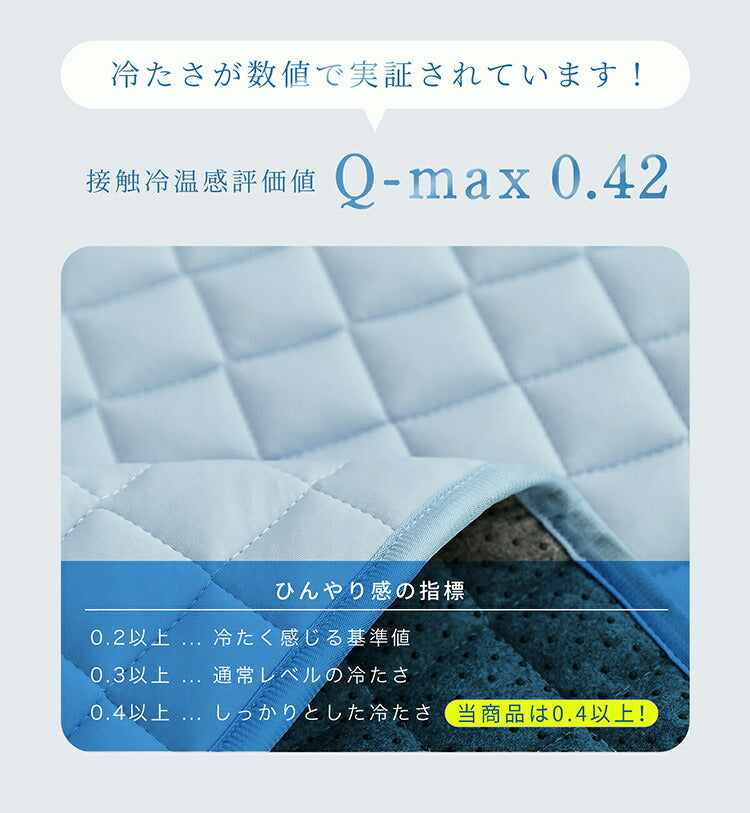 しっかりとした冷たさを感じられるQ-max値 0.42が実証されたひんやりラグマットです。