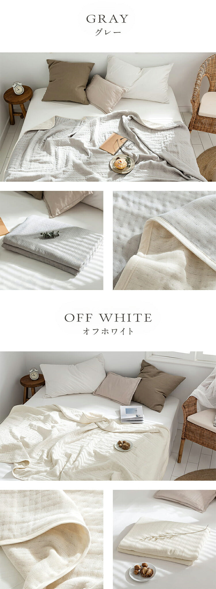 肌掛けやシーツ代わり、インナーケットにと季節やお好みに合わせて使い分け可能です。