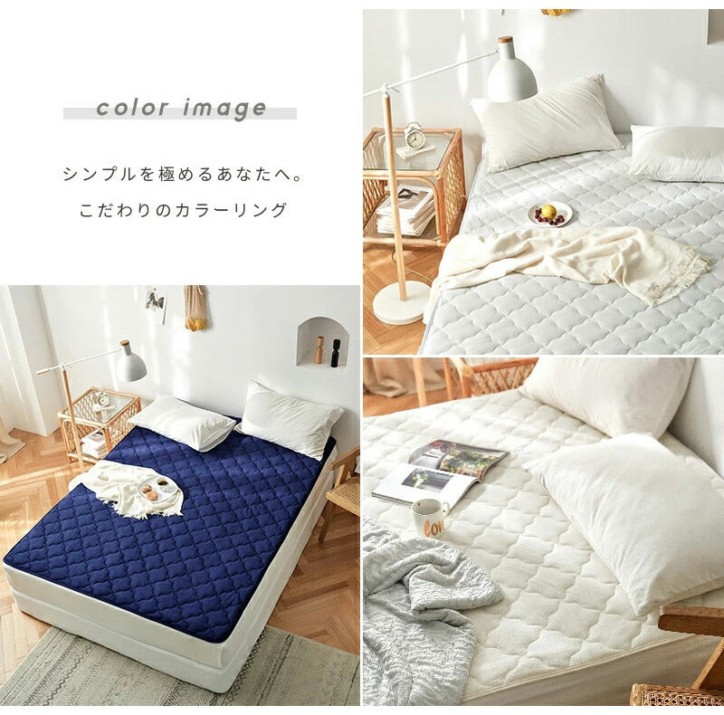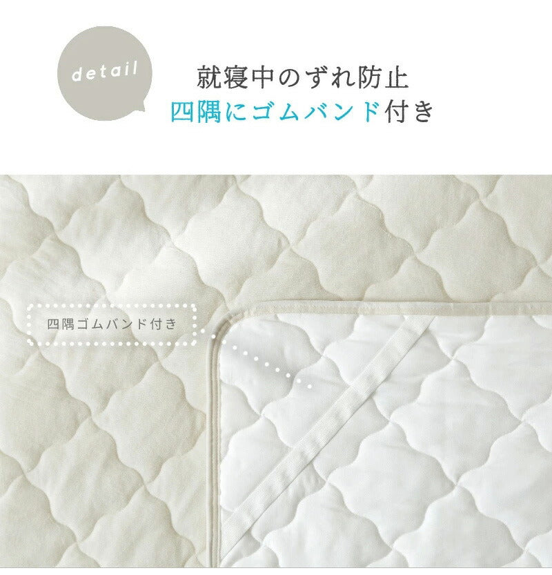 四隅ゴム付きでずれにくく、敷き布団はもちろんマットレスにもお使い頂けます。