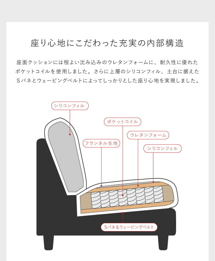 内部…天然木、ウレタンフォーム、シリコンフィル、ウェービングテープ、ポケットコイル