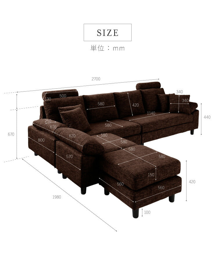 コーナーソファ 4人掛け 幅270cm ポケットコイル 北欧 おしゃれ ハイバック L字 I字 オットマン カバーリング ローソファ コーナーソファー カウチソファ 四人掛け concise コンサイス(代引不可)