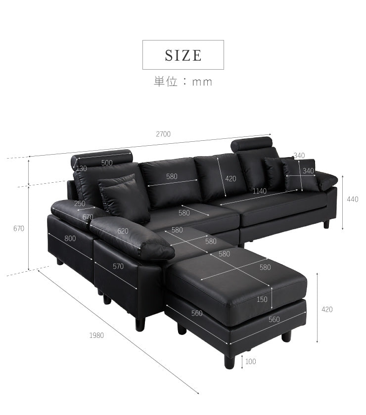 コーナーソファ 4人掛け 幅270cm レザー PVC 北欧 おしゃれ ハイバック L字 I字 オットマン カバーリング ローソファ コーナーソファー カウチソファ 四人掛け concise コンサイス(代引不可)