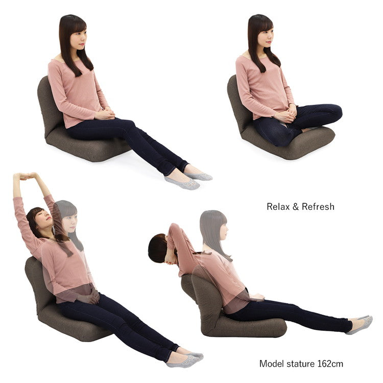 2つのアプローチで負担の少ない「自然な姿勢」をサポート。「ストレッチ」もできる健康を考えた座椅子。(特許第5856458号)