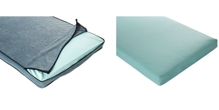 上層クッションは「低反発ウレタン」であたりをやさしく、下層クッションは「高反発ウレタン」でしっかりと立ち上げりやすい仕様です。中身は安心の防水仕様。カバーは洗えます。
