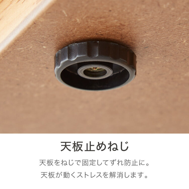天板に節ありオーク化粧繊維板を使用して、木目を感じることのできる天板になっています。また、脚部にもオーク化粧繊維板を貼り高級感のある脚部にしています。