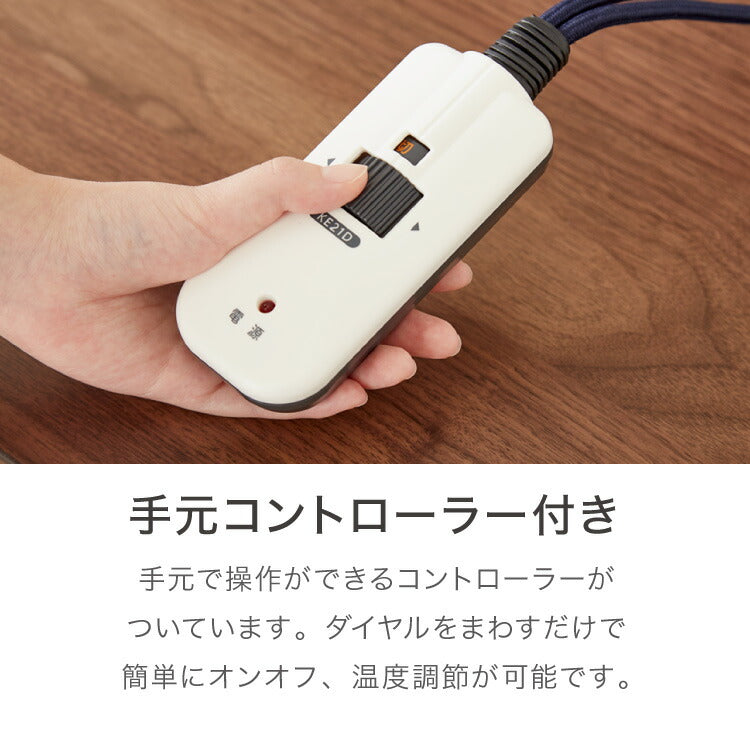 ハロゲンヒーターを採用しているので、即暖性に優れ全体を瞬時に効率よく暖めます。電源コードには電流ヒューズが内蔵されており、異常な温度上昇や電流異常が起きた際に自動で電源が切れるため、安全性が高いです。