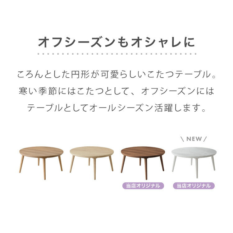 円形こたつ 幅85cm 丸型 木目調 天然木脚 ラバーウッド 工具不要 ねじ込み式 おしゃれ シンプル 一人暮らし 新生活 テーブル オールシーズン 北欧 かわいい シンプル(代引不可)