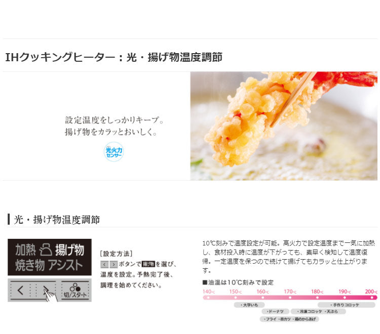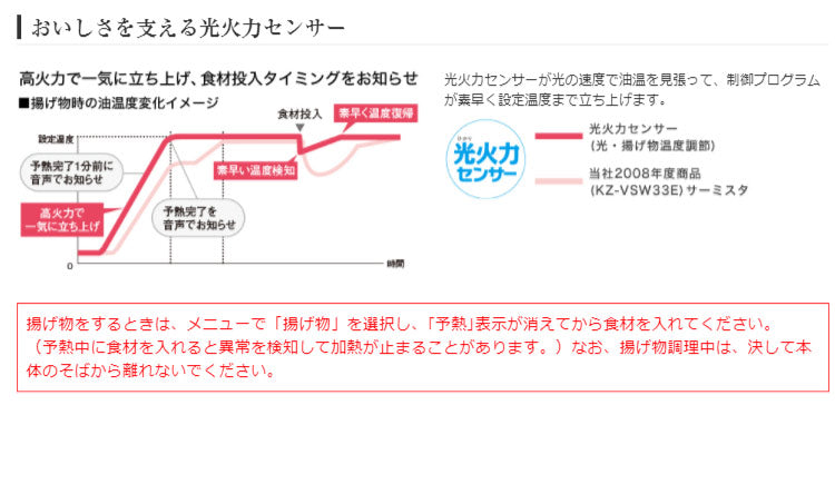 (火力表示が変わらず火力を制御する場合と、設定火力が下がる場合があります。温度調節キーを押してもブザーが鳴り火力は上がりません。)