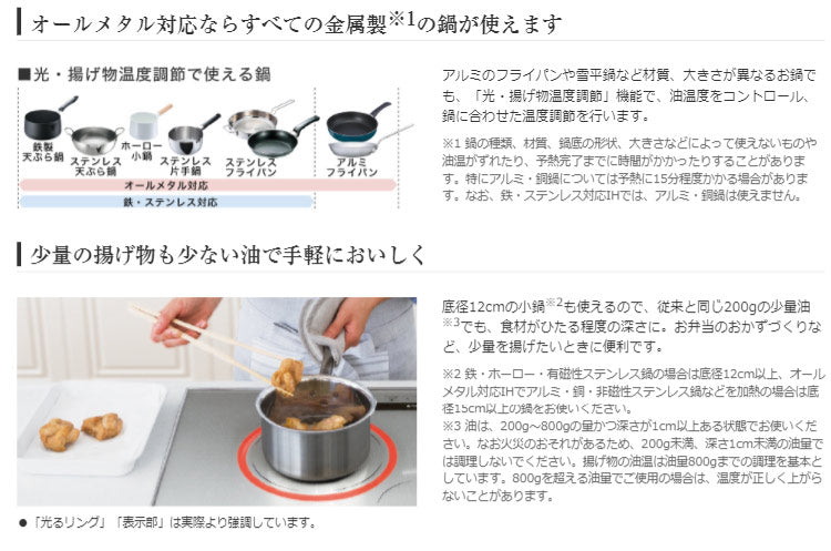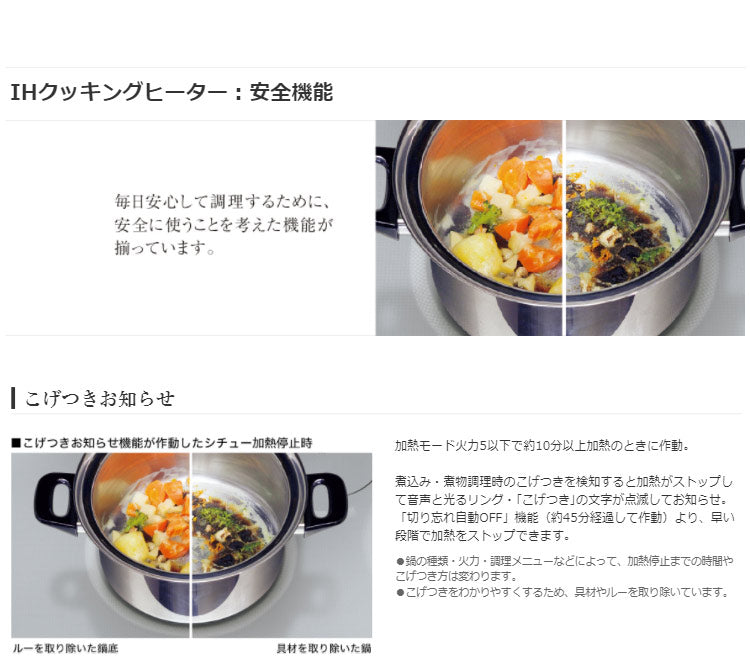 ※ 2つ以上のヒーターを同時に使用した場合、総消費電力量を超えないようにするため、IHヒーターの火力を自動的に制御します。