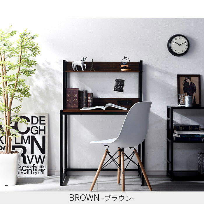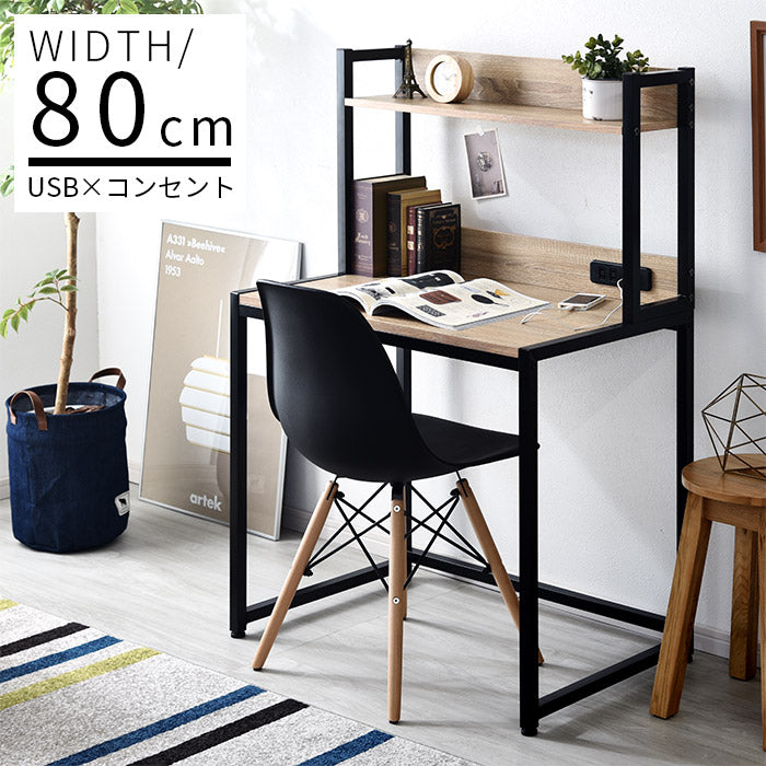 USB×コンセント付き パソコンデスク 幅80cm 上棚付き 棚付き PCデスク 机 学習机 勉強机 デスク ワークデスク(代引不可)