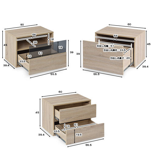 引出1段タイプ/オーク、引出1段タイプ/ウォールナット、引出2段タイプ/オーク、引出2段タイプ/ウォールナット、ガラスタイプ/オーク、ガラスタイプ/ウォールナット