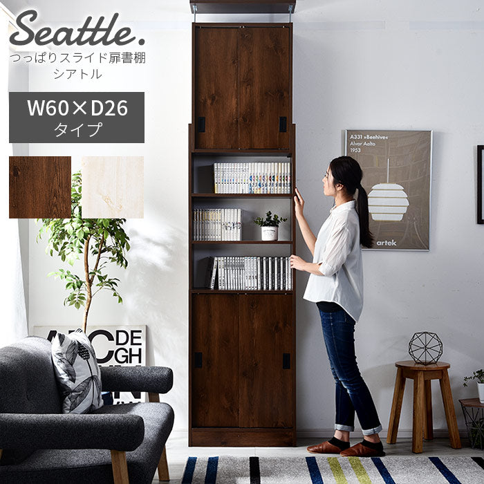 つっぱり スライド扉 書棚 幅60cm 奥行26cm