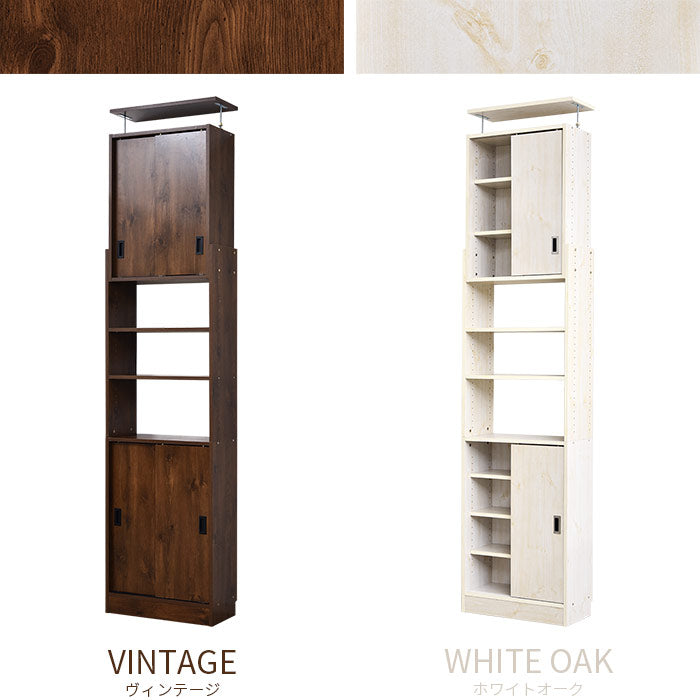 つっぱり スライド扉 書棚 幅60cm 奥行26cm 壁面収納 収納棚 本棚 ラック スリム 突っ張り 食器棚 オープンラック 棚(代引不可)