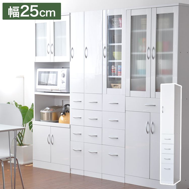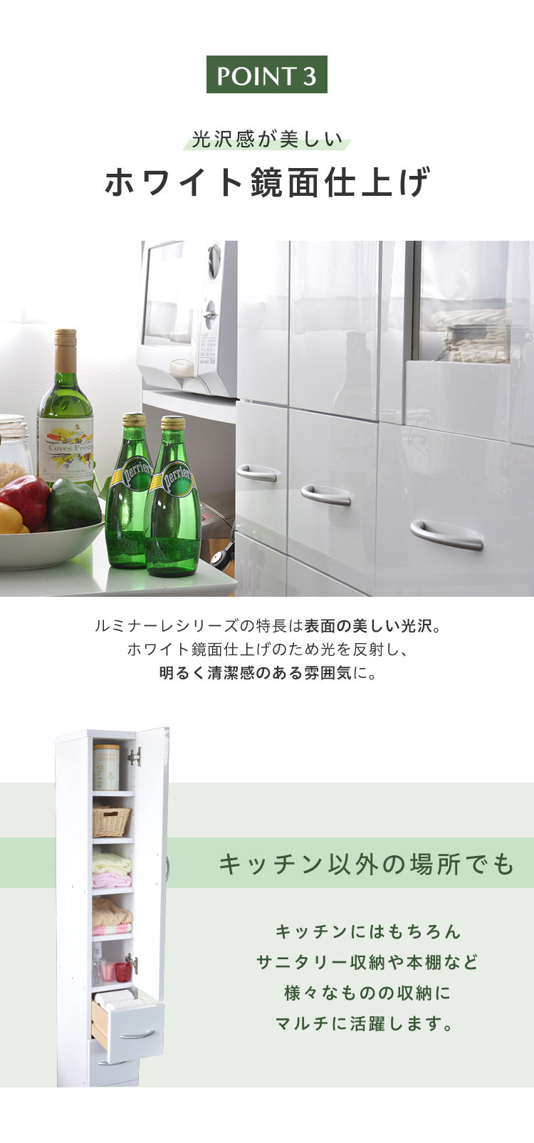 キッチン収納棚 スリム 隙間収納 25cm 幅25cm すき間収納 鏡面 ホワイト ルミナーレ 可動棚 引き出し おしゃれ シンプル モダン 一人暮らし キッチン収納 収納棚 スリム収納 キッチン サニタリー 洗面所 (代引不可)