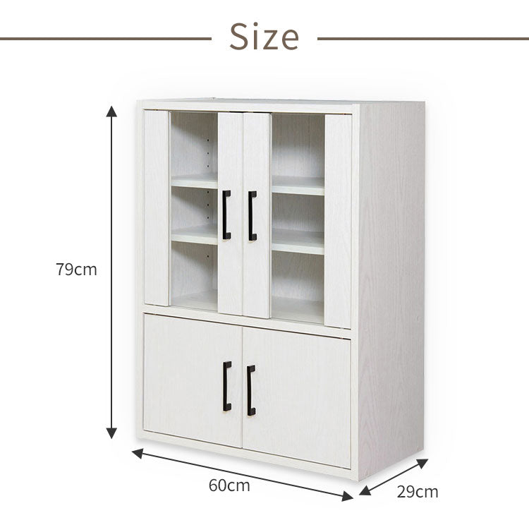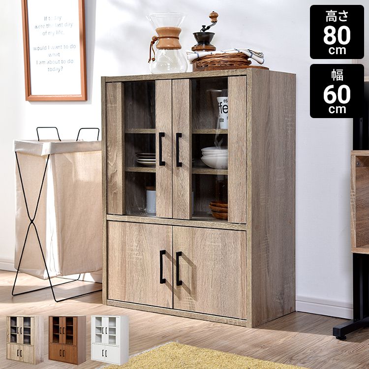 食器棚 ロータイプ 幅60cm 高さ80cm スリム コンパクトタイプ ガラス扉 木目調 おしゃれ 北欧 シンプル キッチン 台所 キッチン収納 カウンター下収納 キッチンボード カップボード キャビネット 棚 (代引不可)